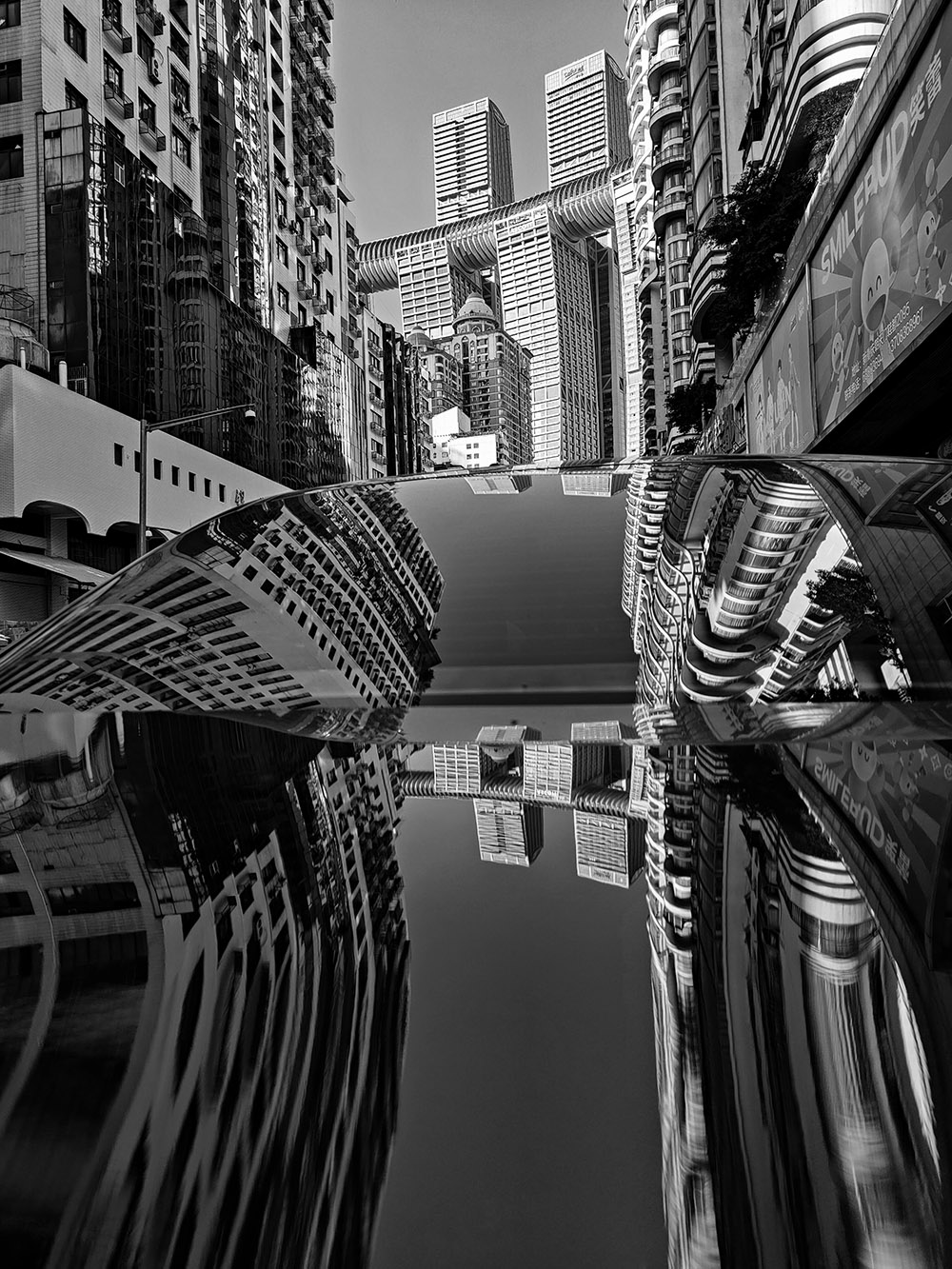 This dynamic street photograph is a visual meditation on the relationship between natural movement and urban stillness. The flock of birds, mid-flight above the riverbank, boats & people highlights a fleeting, organic moment. As in his other work, Kuanglong illustrates here how life constantly breathes evolving energy into our environments.